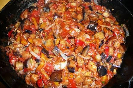 Somewhere between ratatouille and caponata lies the Spanish Pisto Manchego, (pedestrian translation: slow cooked summer vegetables) cooked without hurrying to a lambent jamminess, in contrast to the toothsome integrity of each separately sauteed vegetable in a Provençal ratatoille nicoise or the pickle-icious unctuousness of the small dice caponata.